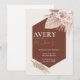 Make a bold yet refined statement with this terracotta geometric boho wedding invitation featuring soft blush roses and delicate dried foliage. A rich earthy hexagon backdrop highlights the couple’s names in elegant typography, creating a modern focal point that feels warm, romantic, and effortlessly stylish.