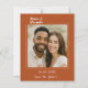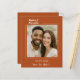 Announce your special day in style with this modern terracotta, burnt orange colored Save the Date card. Featuring your favorite photo framed by a minimalist ivory line border, it perfectly blends timeless elegance with a personal touch. The handwritten script adds a romantic detail, while the clean layout keeps the design contemporary and easy to customize.
