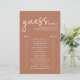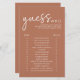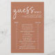 Découvrez qui connaît le mieux la mariée et le marié avec ce minimaliste en terre cuite devinez qui le jeu de douche nuptiale! Ce jeu de douche nuptiale moderne présente un design simple et propre avec une police de script moderne. Ce jeu de douche nuptiale minimaliste est parfait pour une mariée design et moderne. Le format simple permet à tous les invités de participer facilement et de façon amusante. Voyez qui connaît le mieux la mariée et marié avec cette nouvelle prise sur la devinette classique qui jeu. Le design moderne est magnifique pour n'importe quelle douche nuptiale !