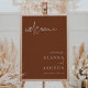 Panneau de bienvenue mariage de calligraphie moderne en terre cuite. Pour une personnalisation plus avancée de cette conception, cliquez sur le BOUTON OUTIL DESIGN BLEU ci-dessus !