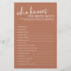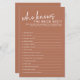 Épicez votre douche nuptiale avec le must Terracotta Who Know The Bride Best Fête des mariées Game! Ce jeu minimaliste ajoute une touche moderne à toute douche nuptiale avec son design contemporain et propre. Avec des invites réfléchies pour révéler la personnalité et les préférences de la mariée, ce jeu encourage le rire et la compétition amicale entre les invités. La mariée sera ravie de découvrir qui porte la plus grande attention aux petits détails qui la rendent unique.