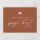 Jolie page d'accueil parisienne carte de proposition garçon. Demandez à votre famille et à vos amis de faire partie de votre mariage avec cette carte personnalisée "Serez-vous mon garçon de page". Il dispose d'un arc et d'un script élégant. Personnaliser en ajoutant un nom et un message