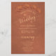 Ces programmes de mariage sont élégants et de bon goût, tout en étant toujours à l'aise avec le budget. L'aquarelle peinte à la main est composée d'un mélange de feuilles et d'arrière - plans en marbre dans les tons de terre cuite, d'orange rouille et de bois brûlé. La typographie présente une calligraphie de script dentée, et il y a de la place pour des détails sur la cérémonie, la fête de la mariée, et un bref merci. Parfait pour un mariage automne ou automne.