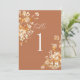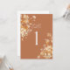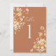 Warm terracotta background table numbers featuring elegant watercolor florals in soft burnt orange, beige, and ivory tones.