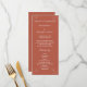 Une carte simple et élégante en terre cuite et blanche programme de mariage. Ajoutez l'ordre de la cérémonie et vos noms sur le devant. Au fond, il y a de l'espace pour les noms des parties nuptiales. Voir le reste de notre collection de Mariages Terracotta ici : https://www.zazzle.com/collections/autumn_terracotta_rust_boho_floral_wedding_suite-119048813946979010