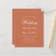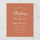 Une faire-part de mariage économique simple et minimaliste. Il n'a que du texte blanc sur l'arrière - plan en terre cuite. Le mot Mariage et les noms sont écrits dans un élégant script calligraphique. La terre cuite est une couleur brun rougeâtre, moderne, naturelle, terreuse.