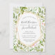 Notre collection Terrarium encadre vos détails mariages avec une bordure géométrique or chic, contre un arrière - plan de feuilles botaniques vert aquarelle et feuillage de fougères.