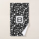 Arrière - plan noir avec motif terrazzo blanc. Personnalisez et ajoutez votre monogramme initial, lettre.