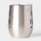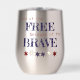 Cette conception présente des étoiles le long du fond avec le message "Terre du LIBRE à cause du BRAVE" sur les côtés opposés du tumeur. Si vous ne voulez pas casser les verres à vin, c'est une idée cadeau sucré pour le camping, les pique-niques et plus encore.