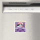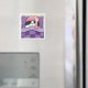 Aimant frigo d'art de chat Whimsical. Un chat blanc et noir endormi se trouve dans son lit, vêtu d'un casquette rayé rose et blanc. Créé à partir d'une peinture originale © 2008 Lisa Marie Robinson