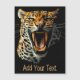 Fierce Puissant Leopard Roaring portrait d'attaque gros avec de longs crocs. Illustration vectorielle originale isolée sur blanc Copyright BluedarkArt TheChameleonArt.