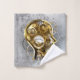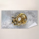 Tête conceptuelle, mécanique, humaine avec manomètre antique et engrenages métalliques contre arrière - plan industriel gris. Style Steampunk.