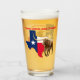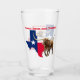 Fier "Texan" Né et élevé et je boirai à cela! Un verre à pinte qui montre audacieusement le contour de l'état du Texas et les couleurs du drapeau avec une longue couronne. Un souvenir "unique" d'une visite au Texas. Personnalisez-vous en changeant la ville en une ville de votre choix.