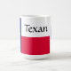 Design unique de tasse avec "Texan" avec le Red, White et Blue Texas Flag et le Texas Bluebonnets.
