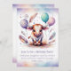 Bring country charm to your celebration with this adorable Texas Longhorn calf invitation! Featuring a soft watercolor calf with boho floral accents and balloons, this design is perfect for rustic, western, or farm-themed birthdays. A sweet and stylish way to invite guests to your special day!