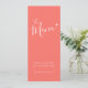 Un menu simple et moderne, avec corail orange et blanc mariage ou menu spécial. Modifiez ce menu de 4 plats avec vos propres mots. Une typographie simple mais moderne et un petit menu moderne au coeur blanc. Idéal pour vivre corail orange rose rouge mariages simples ou des événements à thème coeur ou corail. © Design www.mylittleedenweddings.com sur zazzle.