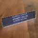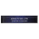 Texte argent clair élégant sur une plaque de bureau à fond galaxie bleue.