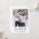 La photo de votre couple est présentée sur cette élégante carte de datation. Un cadre blanc simple lui donne l'importance qu'il mérite. Enregistrer la date est écrit dans un texte moderne et tendance. Deux lignes de texte vous permettent de personnaliser votre message. Le texte au verso fournit plus d'informations. Conçu pour embellir facilement n'importe quelle photo de style pour n'importe quelle saison. Très facile à customiser.