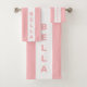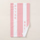 Élégant texte vertical sur le kit de serviettes à rayures blanches et roses de corail clair. Le texte peut être personnalisé.