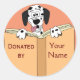 Ces autocollants personnalisables ont une image d'un chien dalmatien de bande dessinée tenant un livre.