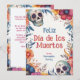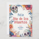 La carte de voeux plat "Eternal Celebration" Dia de Muertos présente une bordure vibrante et colorée composée d'éléments traditionnels tels que des crânes décorés, appelés calaveras, et un assortiment de fleurs qui ajoutent à l'atmosphère festive du design ; la partie centrale de la carte est réservée à un espace de texte personnalisable, qui se lit actuellement "Feliz Día de Muertos" en lettrage gras et stylisé suivi de "from [custom name]" en bas de la page où "Fernandez Family" est actuellement placé ; cela indique que le nom de l’expéditeur peut être personnalisé ; l’arrière - plan derrière ce texte semble être une couleur blanche qui contraste avec la bordure vive, s’assurant que tout message personnalisé ajouté se démarque clairement ; le dos de la carte offre de l’espace pour un message personnalisé et comporte le même arrière - plan à motifs floraux et crâniens que le devant, en conservant un design cohérent et festif tout au long de la journée.