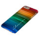 Rainbow multicolor stripe dur iPhone 6 coque avec texte personnalisé. Le design de bande ruban arc-en-ciel éclatant et éclatant est composé d'un large éventail de nuances rouges, vertes, bleues et jaunes. Personnalisez-le avec votre nom ou tout autre texte que vous voudriez.