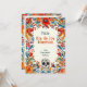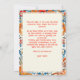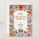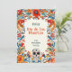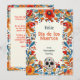La "Vibrant Traditions - Día de los Muertos Card" présente un crâne décoré et des motifs floraux vibrants avec du texte personnalisable, dont "Feliz Día de los Muertos" en haut et "from [custom name]" en bas, avec de l'espace à l'arrière pour un message personnalisé et le même arrière - plan floral que l'avant.