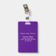 Des textes simples, un badge de conception avec photo de l'employé que vous pouvez customiser pour vous et vos employés. Les couleurs et la forme du design sont des textes roses et blancs sur des arrière - plans violets et format de portrait rectangle forme. Pour customiser ce badge, tapez le nom de votre entreprise ou de votre entreprise, l'adresse, le numéro de téléphone, le nom de l'employé, le titre de l'employé, le numéro d'identification de l'employé et téléchargez la photo de l'employé. Après avoir tapé des textes et téléchargé une photo, veuillez vérifier l'apparence sur les côtés avant et arrière. Si l'apparence vous plaît, vous pouvez passer votre commande maintenant. Si vous avez besoin de redimensionner et déplacer les textes et la photo pour tenir sur ce badge, s'il vous plaît changer dans l'outil de conception. Vous pouvez également effectuer d'autres modifications dans l'outil de conception en fonction de l'apparence que vous préférez, comme changer la couleur arrière - plan, la couleur de police et le style de police.