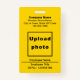Des textes simples, un badge de conception avec photo de l'employé que vous pouvez customiser pour vous et vos employés. Les couleurs et la forme du design sont des textes noirs sur la forme du rectangle au format arrière - plan jaune et au format portrait. Pour customiser ce badge, tapez le nom de votre entreprise ou de votre entreprise, l'adresse, le numéro de téléphone, le nom de l'employé, le titre de l'employé, le numéro d'identification de l'employé et téléchargez la photo de l'employé. Après avoir tapé des textes et téléchargé une photo, veuillez vérifier l'apparence sur les côtés avant et arrière. Si l'apparence vous plaît, vous pouvez passer votre commande maintenant. Si vous avez besoin de redimensionner et déplacer les textes et la photo pour tenir sur ce badge, s'il vous plaît changer dans l'outil de conception. Vous pouvez également effectuer d'autres modifications dans l'outil de conception en fonction de l'apparence que vous préférez, comme changer la couleur arrière - plan, la couleur de police et le style de police.