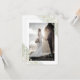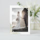 Newlyweds thank you card with a modern typography and a romantic wedding couple photo on lace effect.