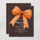 Une arrière - plan de couleur brun foncé. Décoré d'une arbalète orange. Personnalisez et ajoutez les détails de la fête. 1 feuille = 1 invite imprimé bord à bord.