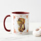 Tasse à café avec l'image vintage de Thanksgiving d'une Pèlerine avec cornucopie et bordure d'automne.