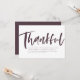 Cette invitation à dîner de Thanksgiving comprend un script de brosse audacieux "reconnaissant" dans une riche ombre d'automne de prune violet ainsi que la typographie moderne pour vos détails de fête. Cette invitation est coordonnée avec la collection Lea Delaveris Design Thanksgiving.