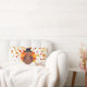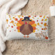 L'oreiller est montré avec des feuilles d'automne et un imprimé de dinde Thanksgiving sur un arrière - plan blanc. Customisez ce coussin ou achetez tel quel.