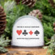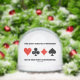 Wry bridge / duplicate bridge attitude is found with this snow globe featuring the four card suits along with the following saying in the world of bridge: "The Best Bridge Partners Have The Most Endurance". Do a double-take at what you are referring to the next time you play in a bridge tournament and pair up with someone at the Partnership Desk with this bridge saying snow globe!