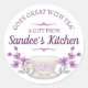 Boule de thé brassant maille avec joli mais simple tasse de thé ou de thé, roses et violets marque cadeau autocollant ou étiquette d'emballage pour les vendeurs de thé qui mélangent le thé, ou comme un joli autocollant cadeau personnel. Blues, violets et roses avec une touche de feuilles verts et taupe dans cette illustration numérique de style aquarelle.