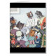 Illustrations vintages mignonnes des femmes et des enfants de chat ayant le thé d'après-midi