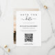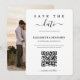 Design moderne et élégant imprimé Code QR de calligraphie minimaliste pour photo Save the Date qui peut être personnalisé avec votre texte. Veuillez cliquer sur le bouton "Personnaliser" et utiliser notre outil de conception pour modifier ce modèle. Découvrez la boutique Graphic Art Design pour d'autres produits qui correspondent à ce design !