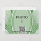 Idéal pour les mariages en plein air et les événements spéciaux. Ces faire-part de mariage vert tropical offrent un attrait amusant et classique. Utilisez-les pour compléter les thèmes de mariage tropicaux et les événements spéciaux. Le recto de la carte comprend les noms des mariés ainsi que la date de la cérémonie de mariage. Le verso accueillera une photo. Il y a également un code QR pour inclure votre site web de mariage, RSVP, liste de mariage (entre autres). Le design présente des feuilles vertes tropicales. Utilisez le modèle pour personnaliser.