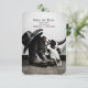 Embrace a unique and dramatic theme for your wedding with this 'Save the Date' card. Inspired by gothic western and cowboy aesthetics, this design showcases a powerful juxtaposition of a weathered cowboy hat, rugged boots, and a cattle skull adorned with a striking dark red rose. The moody, dark color palette and vintage feel create an atmosphere of mysterious romance, perfect for couples planning an unconventional and memorable wedding. This card is a perfect way to inform guests of your upcoming date while setting a captivating tone for your celebration. The simple, elegant monograms on the back add a touch of classic refinement.