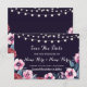 Fleurs Navy Rose Bourgogne Save The Date Rustique, avec guirlande lumineuse, parfait pour informer vos invités de la date de votre événement ! Article assorti à la collection ! Recto et verso inclus.