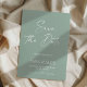 Modern Elegant script sage green typography wedding save the date announcement.