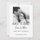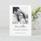 Annoncez votre jour spécial dans un style intemporel avec cette carte de save the date photo noir et blanc à l'écriture moderne. Avec une typographie élégante et fluide associée à votre photo de fiançailles préférée, cette annonce de mariage minimaliste est parfaite pour les couples qui prévoient une célébration chic et contemporaine.