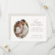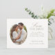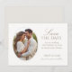 Elegant and chic. This minimalist script wedding save the date card features a contemporary set of light taupe fonts and elegant couple photo frame against a soft ivory white background. The back includes optional couple initials against a soft sand color.