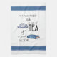 "Tout ce dont vous avez besoin, c'est d'une tasse de thé et d'un bon LIVRE" des mots apparaissent avec un tableau aquarelle d'une tasse de thé et un livre à rayures bleues et blanches et bleues pour faire cette confortable serviette de cuisine à thème de lecture.