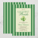 She's the luckiest bride! St. Patrick's day themed bridal shower invitation. The design features elegant vintage inspired calligraphy, adding a touch of classic sophistication to your announcements. This refined script beautifully complements the overall aesthetic, inviting guests with warmth and style. A backdrop of green stripes offers a serene and inviting canvas, creating a harmonious balance between elegance and charm. This pattern evokes a sense of traditional refinement, perfectly aligning with the old money aesthetic. A delicate watercolor illustration of a four-leaf clovers add a whimsical touch to each piece, artfully arranged to bring a sense of joy and fortune to your celebration, making the bride feel like the luckiest bride on St. Patrick's Day.