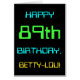 Ce design simple et amusant de carte de voeux d'anniversaire comporte un message comme "HAPPY 89th BANTHDAY, BETTY-LOU!". Il présente également une apparence amusante inspirée de l'informatique numérique. Le nom à l'avant et le message à l'intérieur peuvent être personnalisés. Il pourrait être envoyé ou donné à quelqu'un qui célèbre son quatre-vingt-neuvième anniversaire, et qui peut-être travaille (ou a travaillé avant la retraite) comme administrateur de système informatique, programmeur informatique, administrateur réseau, ingénieur électrique, développeur logiciel, ou qui aime utiliser des ordinateurs. [~Z0000100]