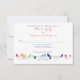 Le texte sur cette carte de réponse de mariage florale à thème de couleur arc-en-ciel amusante et unique avec des oiseaux, des fleurs et des feuilles est entièrement personnalisable. Un excellent choix pour ceux qui ont un mariage à thème arc-en-ciel. Pour modifier le texte, utilisez l'option "Personnaliser". Pour des modifications de texte plus importantes, y compris des changements de police, de couleur de police, de taille de police ou de placement de texte, utilisez l'option "Personnaliser". Vous pouvez également l'essayer sur différents types de papier. Vous pouvez utiliser cette carte de réponse de couleur arc-en-ciel comme une carte d'information de mariage plus générale avec des modifications au texte. Par exemple, elle pourrait être transformée en une carte de réception, d'itinéraire et/ou d'hébergement.