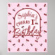 Un design de cerise charmant pour célébrer le premier anniversaire de votre petit. Ce poster de cerise apporte une touche de fantaisie et de charme vintage. Cette oeuvre d'art unique a différentes tonalités de écarlate, de rougissement, de violet et de chartreuse. Modifiez la couleur, le graphisme et le texte de l'arrière - plan pour personnaliser et customiser complètement.