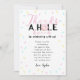 Carte de remerciement de fête d'anniversaire mignonne après une fête d'anniversaire sur le thème du donut avec une illustration de beignet avec des paillettes. Le texte en haut dit "Merci beaucoup" avec un donut à l'intérieur du texte. Personnalisez ce modèle de carte d'invitation en ajoutant le nom de votre enfant en bas.